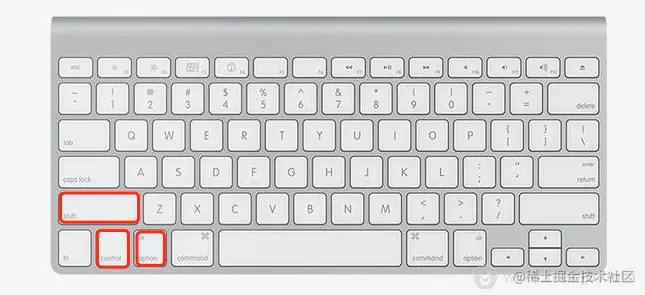3.在内置键盘上,同时按住(左侧)Shift,Ctrl和Option(Alt)键以及电源按钮。按住它们十秒钟。