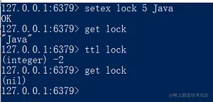 可以看出,当把key为lock的值设置为"Java"后,再设置成别的值就会失败,看上去很简单,也好像独占了锁,但有个致命的问题,就是key没有过期时间,这样一来,除非手动删除key或者获取锁后设置过期时间,不然其他线程永远拿不到锁。