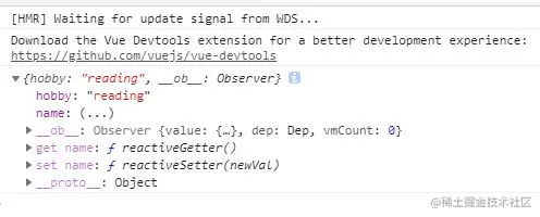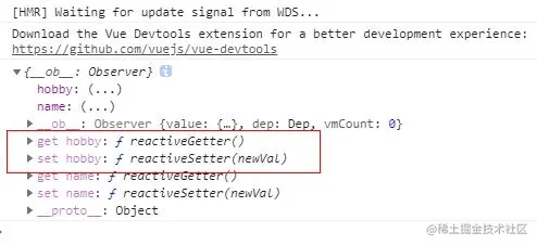 图2是仅使用了一行代码this.student.hobby = 'reading',打印出的student,里面只是新增了hobby属性,但是没有get hobby和set hobby的方法。