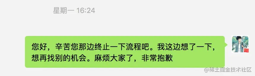 然后谈到入职时间的问题,对方说了一句“早点来对你有好处”,因为这个hr说话一直都是那种比较冷淡的,听到这句话我真的炸了。我是为了镀金,但也不能没底线,我就让她们终止流程了