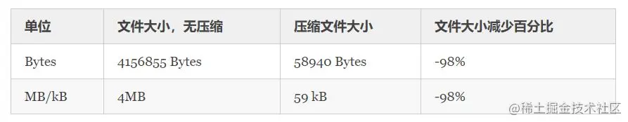 一般情况下可将 4MB 大小的文件减小到 100kB。可以在 Github中查看演示代码。