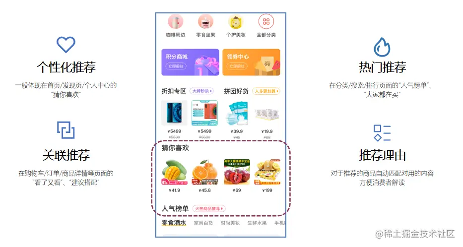 运用标签对不同消费者的长、短期购物兴趣、购物习惯进行洞察,通过智能推荐可以让消费者在线“逛商城”的过程中快速找到自己心仪的商品集合。对于品牌商家而言,商城智能推荐能够加速用户转化,提升GMV和用户体验,实现“千人千面”的推荐服务。