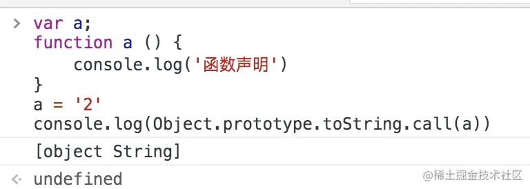 但是如果变量声明赋值了,之前的函数定义就会被覆盖,类型就变化了。