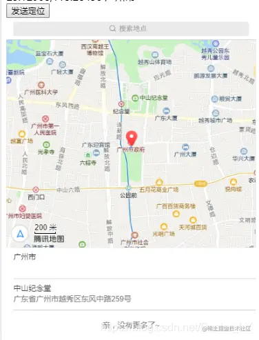 1、选址的过程中,拖拽地图时,虽然下面的地址列表会跟着更新,但是不会默认第一个,还需要点击一下地址列表。不像微信一样在拖拽过程中会默认第一个,拖拽完就可以点击发送。如果要做跟微信一样的功能,在拖拽后就需要点击一下地址列表,再点击发送。目前地图组件不支持自定义,例如拖拽地图的事件。
