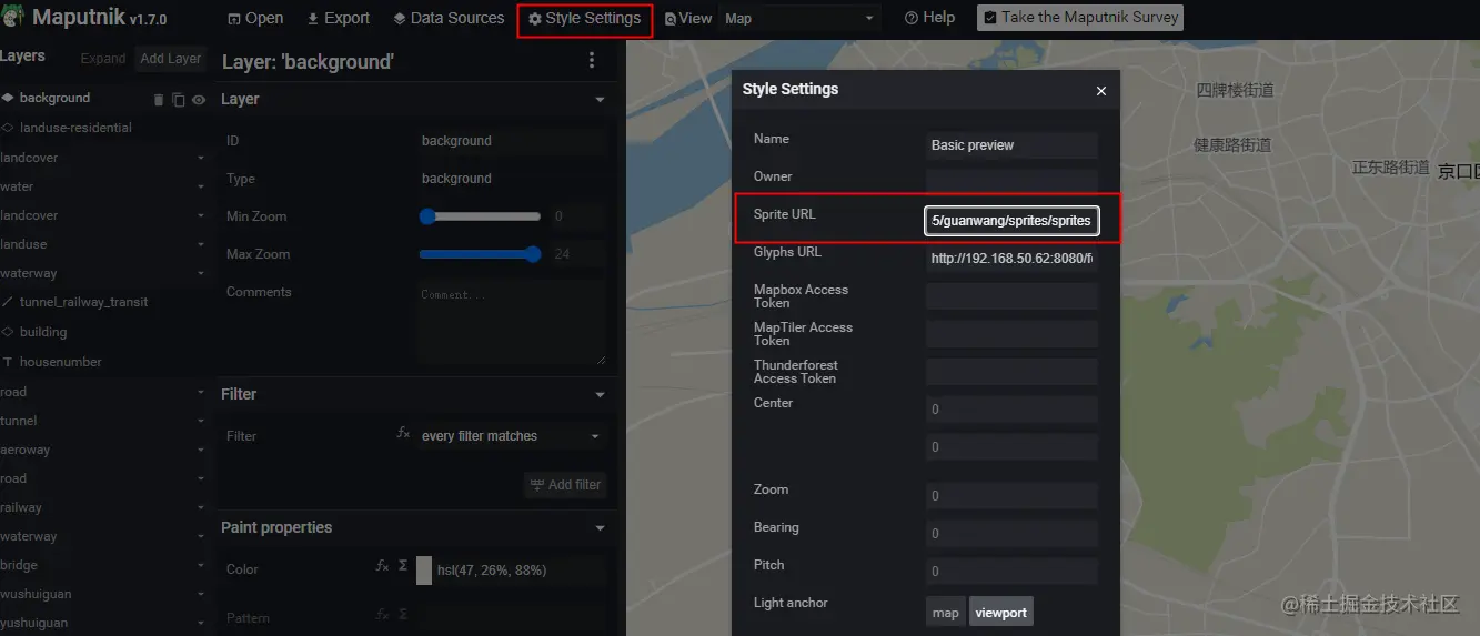 在 maputnik 中使用生成的精灵图