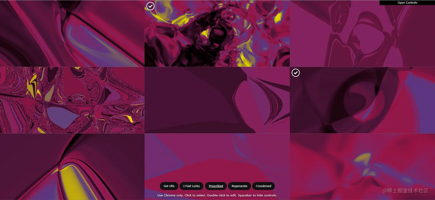 如果这9张图像都不符合您的口味,你可以点击Regenerate获取9张新的新图像,这些图像在某种程度上都与以前的图像有所不同。如果您已经喜欢某些现有图像,你可以点击选中它们,然后按Crossbreed按钮将选中的图像混合生成一些新图像,重复多次,直到找到理想的图像。通过其它一些选项,你可以导出静态图片、动图甚至MP4视频。