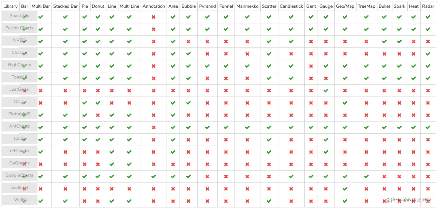 让我们看看这些图表库如何相互权衡。请参阅下面的数据表,希望能帮助您做出更容易使用的决定。