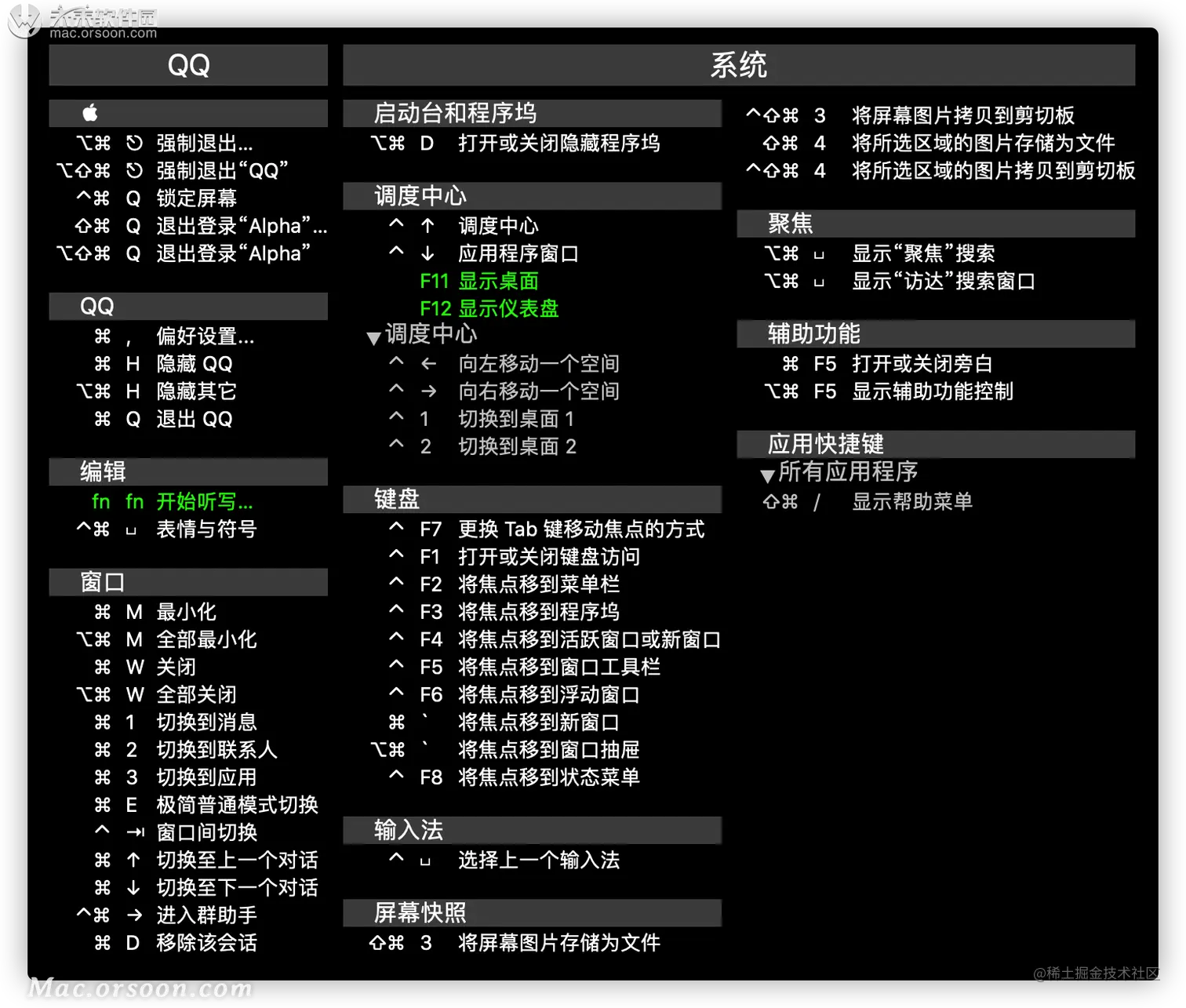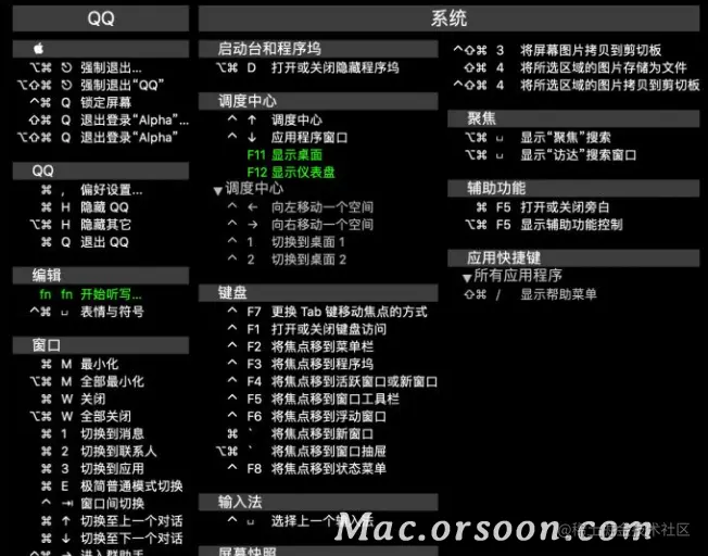 1.App界面 双击修饰键就可以显示系统和当前应用程序的快捷键