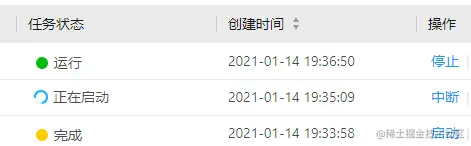- 在点击启动之后,立即刷新列表,后台将该任务状态置为正在启动的状态标识;