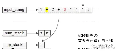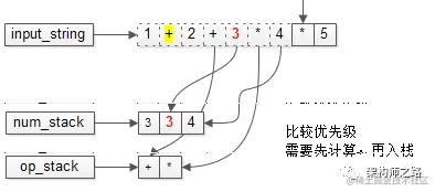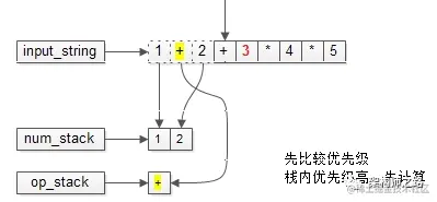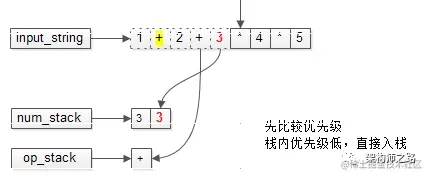 如果栈顶的运算符优先级高,先出栈计算,新运算符再入栈