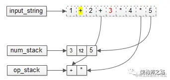 一步步,扫描字符串,操作数一个个入栈,运算符也入栈。