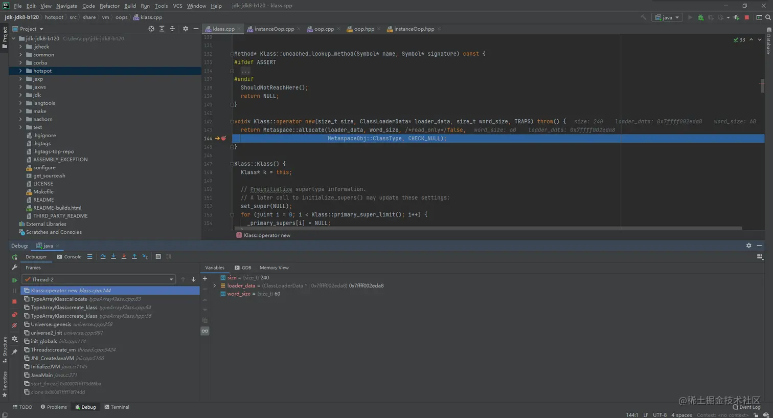 把jdk-jdk8-b120.tar.gz解压,用clion打开项目(open -> 选择jdk-jdk8-b120目录)