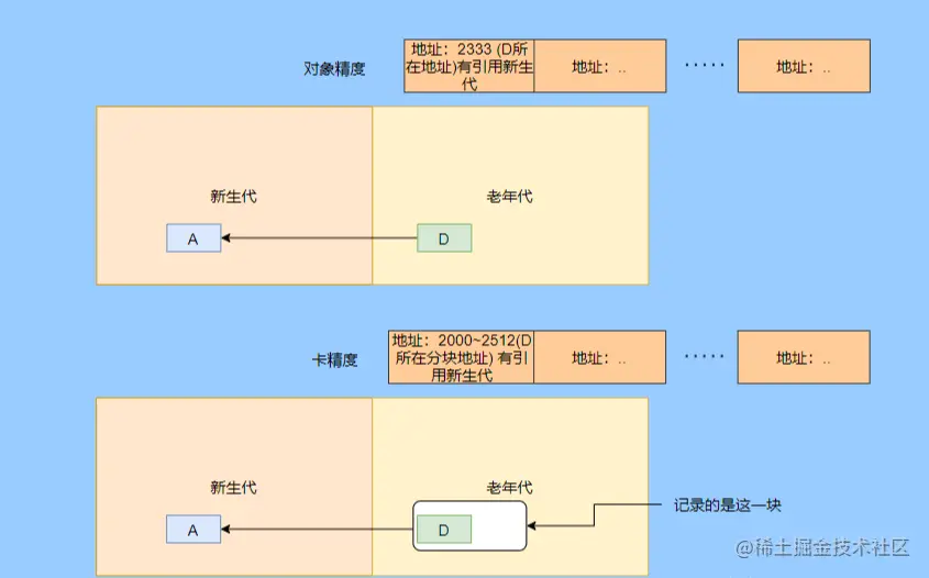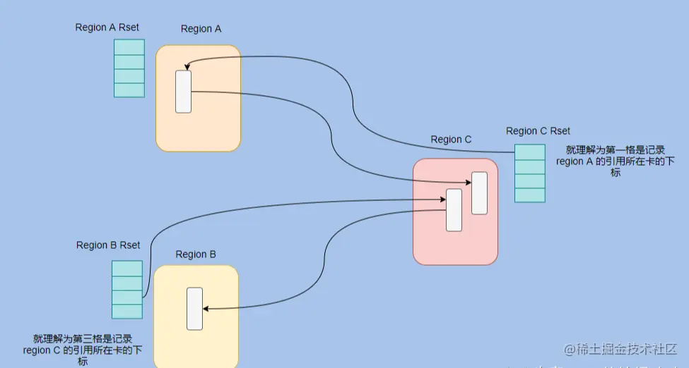 因为一个 region 需要知道有哪些别的 region 有指向自己的指针,然后还需要知道这些指针在哪些 card 中。