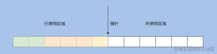 内存是紧凑的,新对象创建指针就右移对象大小 size 即可,这叫指针加法(bump [up] the pointer)。