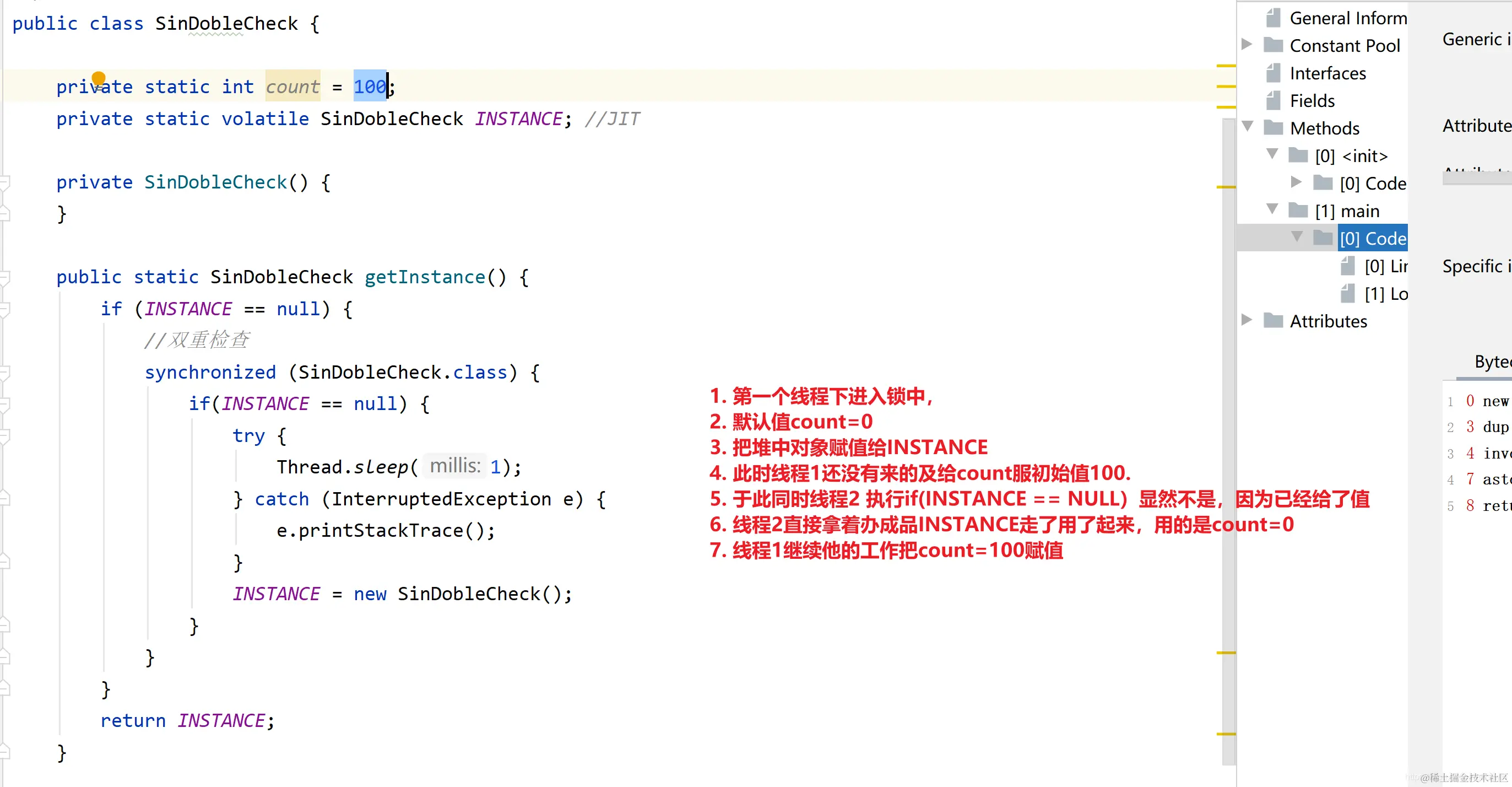 - 从上面的解释可看到 1,2,3 这散步是一步一步来的,但是在 jvm 的底层,2,3 步可能是乱序的,也就是说可能真正的过程是 1,3,2 或者是 1,2,3
