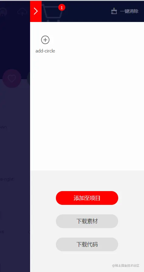 首先找个自己要用的图标加入购物车,点击添加至项目,如果没有新建个项目