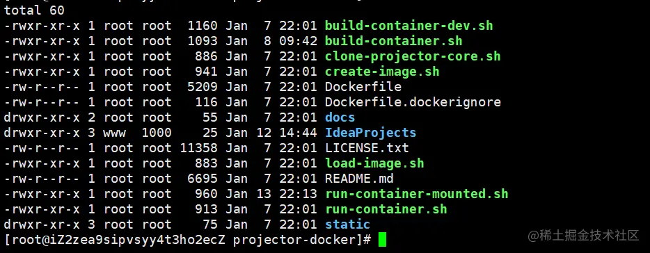 切换到projector-docker目录,也就是JetBrains的docker项目下,相关目录脚本如下