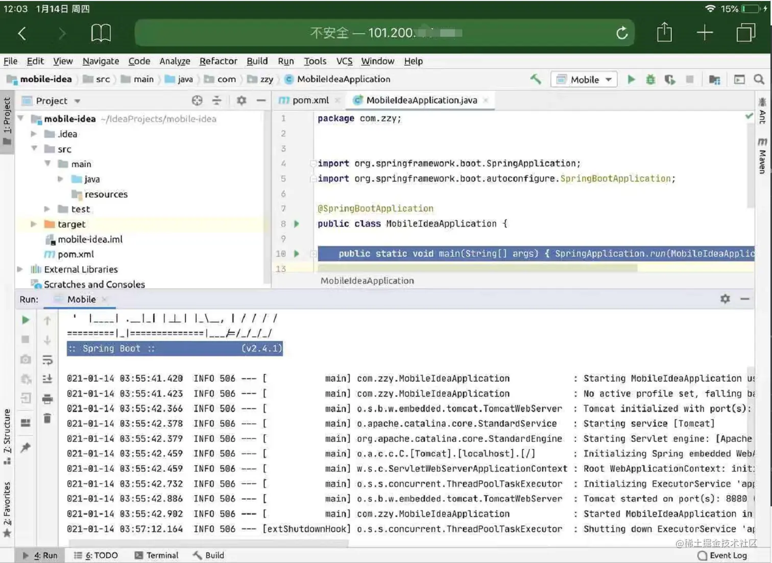 今天,给大家送福利了,带你在iPad上安装一个IntelliJ IDEA撸一个SpringBoot,从此告别双肩包。下面是手机上和iPad上打开IDEA的效果。