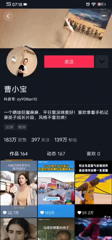 个人主页用的是 CoordinatorLayout + AppBarLayout 折叠布局