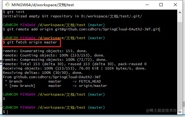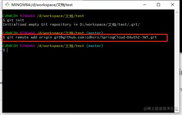 例如:git remote add origin git@github.com:cdhcrs/SpringCloud-OAuth2-JWT.git