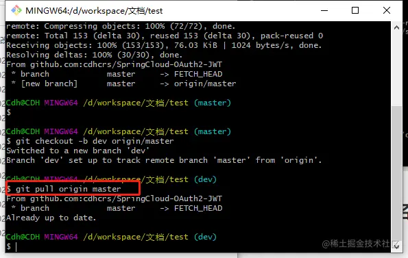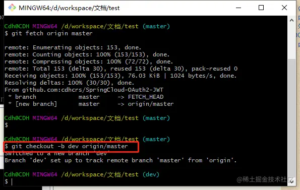 - 例如:git checkout -b dev origin/master