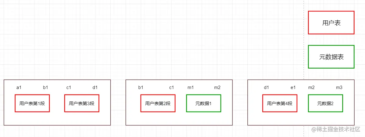 我们可以先去找一个中间机构去确认要找的数据在这4段中的哪一段,创建一个元数据表meta存真正数据的Region位置,先去找meta表。当元数据表变得特别大,也会切分多个段放在RegionServer中,这个时候就会提供一个ROOT表来确定meta表的位置。