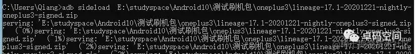 adb sideload E:\studyspace\Android10\测试刷机包\oneplus3\lineage-17.1-20201221-nightly-oneplus3-signed.zip
