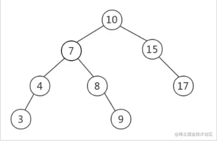 二叉查找树(BST,Binary Search Tree),也叫二叉排序树,在二叉树的基础上需要满足:任意节点的左子树上所有节点值不大于根节点的值,任意节点的右子树上所有节点值不小于根节点的值。如下是一颗BST: