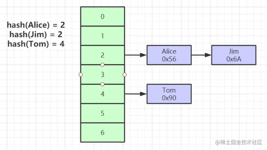 使用hash数据结构作为索引的存储数据结构,在存储数据的时候会根据索引计算出的hash值来“填坑”式的绑定存储数据。如上图所示就会存在hash值碰撞的问题,俩个不同的数据hash值落在同一“坑位”,并且hash值随机的算法,在直接使用的范围型的查找方式时,不能在起到索引作用