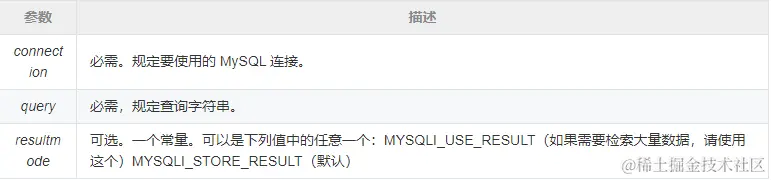 mysqli_query(connection,query,resultmode);