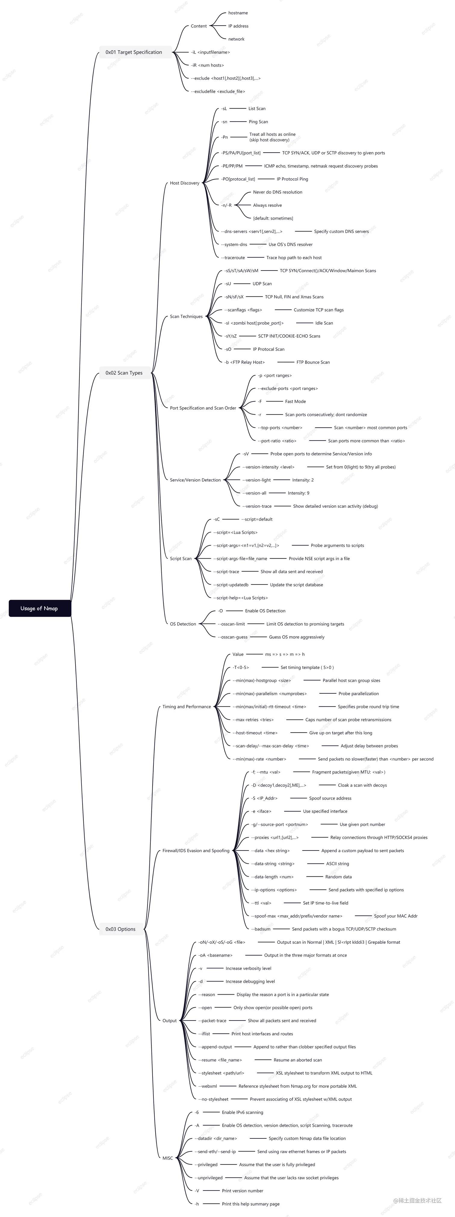 nmap [ <Scan Type> ...] [ <Options> ] { <target specification> }