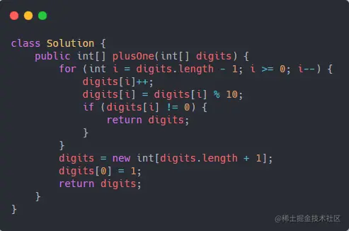 3、进位之后,下一个元素仍需加一,加一的操作可以重复1、2两个步骤。 但是如果遇到9999这种全是9的数字,按照以上步骤操作完毕之后整个数组就成了0000,此时可以重新初始化一个数组,将首个元素置为1,其他元素默认0即可。