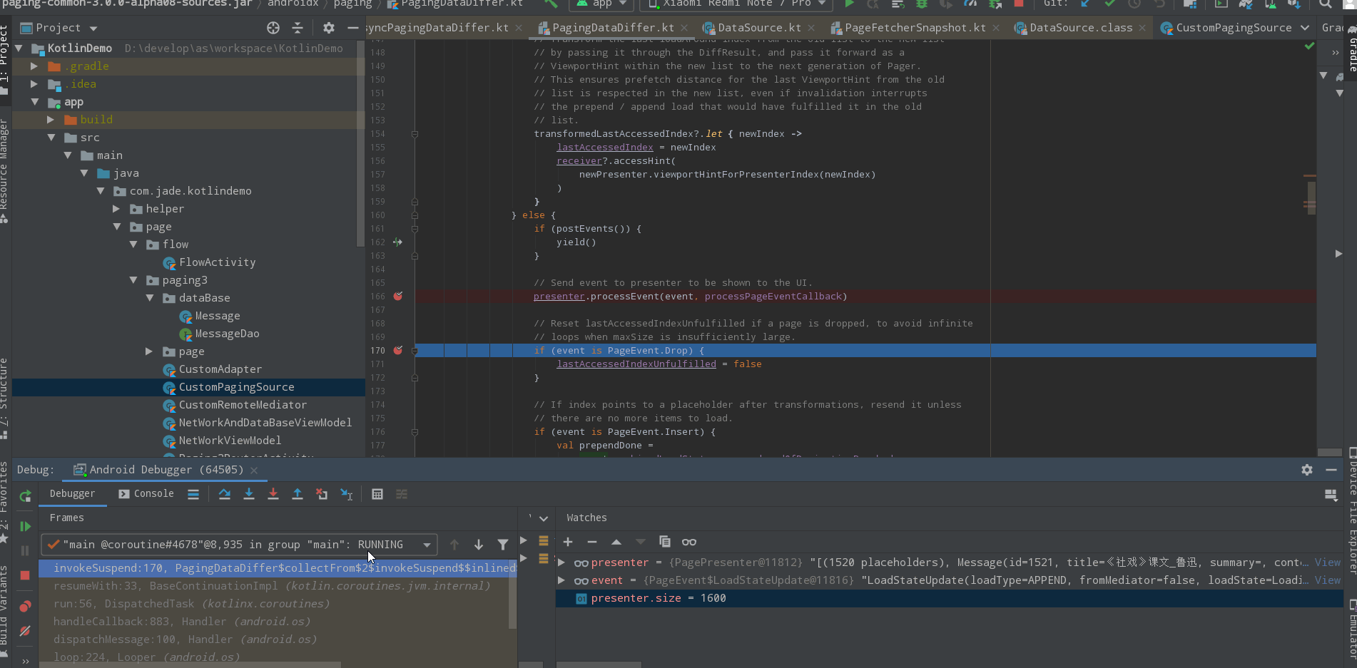 - 使用协程进行异步处理。debug难度增加,就目前而言,debug Paging3内部的源码存在两个问题,要么打了debug的断点根本不生效,要么就是虽然生效了,但是始终断不下来。