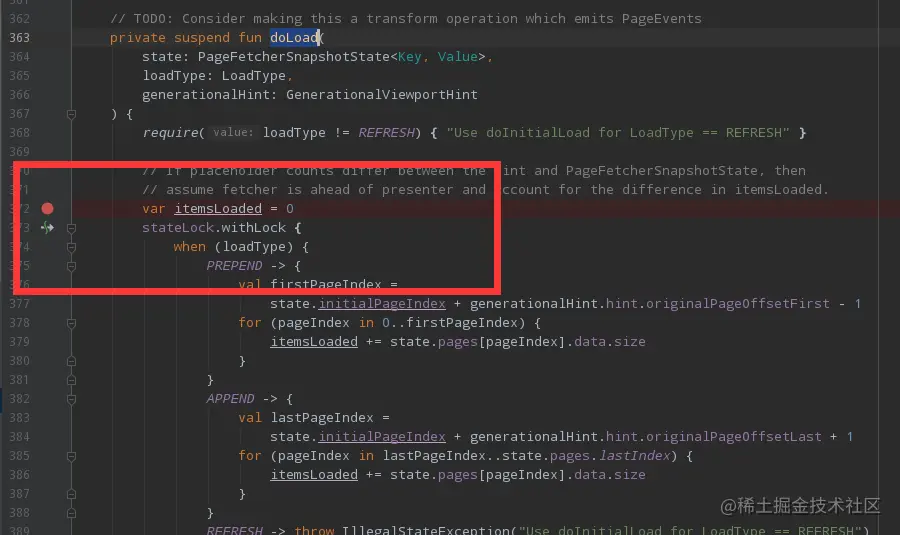 大家看上面动图,我在前后打了两个断点,前面那个断点不能断,后面那个断点可以断下来。真的,看Paging3的源码真的太难了,连普通的debug都成问题。
