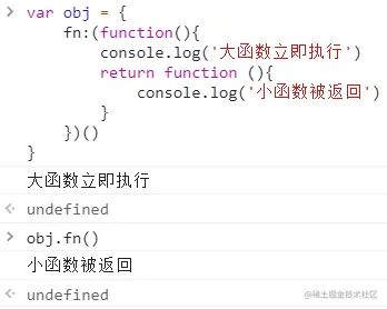自执行函数在给fn赋值的时候就执行了,把小函数的地址返回给fn