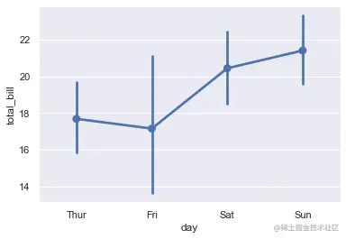 sns.pointplot(x='day',y='total_bill',data=tips)