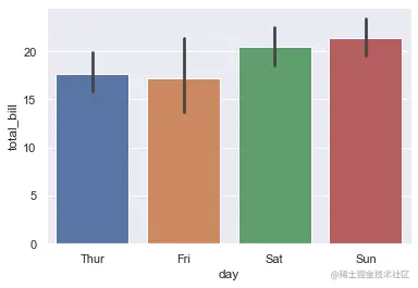 sns.barplot(x='day',y='total_bill',data=tips)