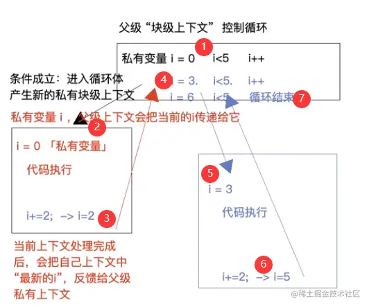i += 2;//当前上下文处理完成后,会把自己的上下文中的最新的'i',反馈给父级私有上下文