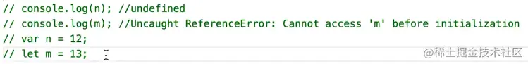 console.log(m)//Uncaught ReferenceError: Cannot access 'm' before initialization(未捕获的引用错误:在初始化之前无法访问“m”)