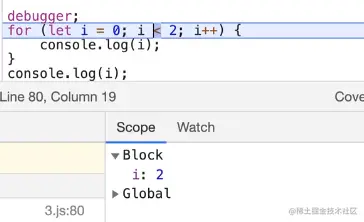 console.log(i); //Uncaught ReferenceError: i is not defined */
