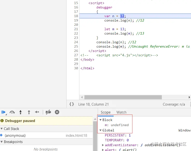 console.log(m); //Uncaught ReferenceError: m is not defined