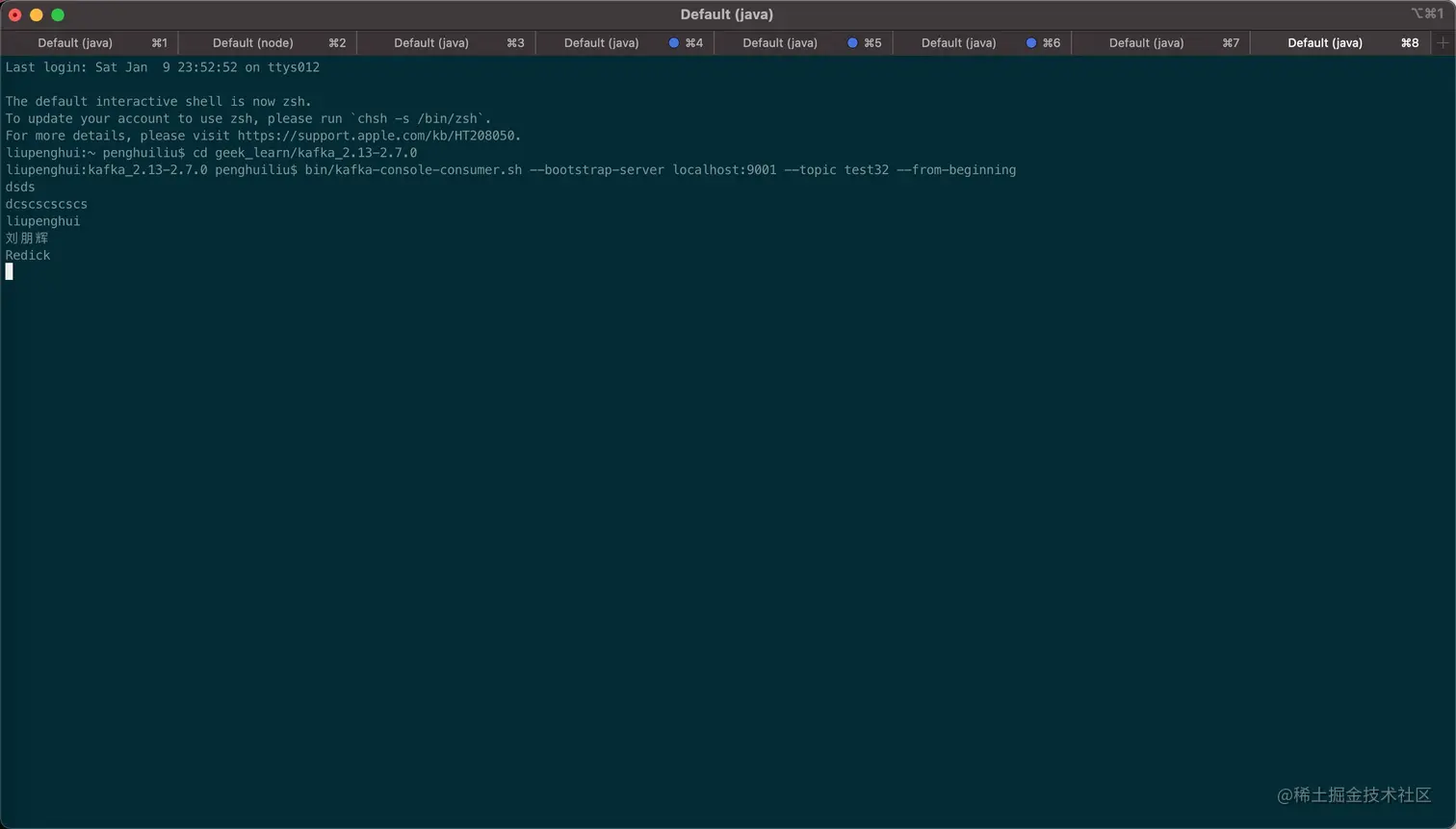liupenghui:kafka_2.13-2.7.0 penghuiliu$ bin/kafka-console-consumer.sh --bootstrap-server localhost:9092 --from-beginning --topic testr