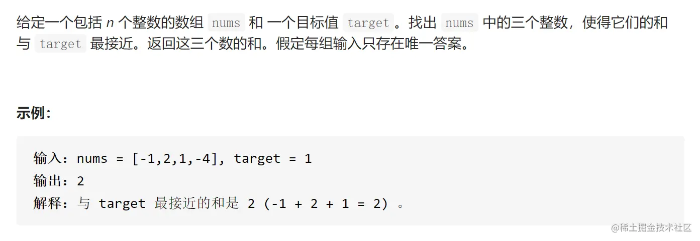 public int threeSumClosest(int[] nums, int target) {