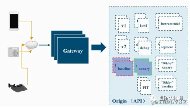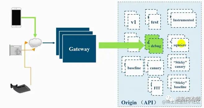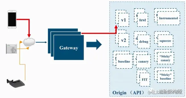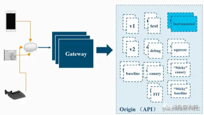 生产上,不方便测试的,可以采用网关,进行导向测试路由。