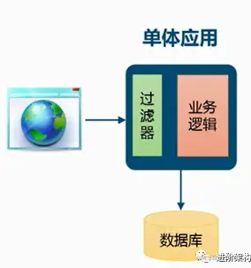 传统的单体技术架构,所有的内容,被打包进一个包内。为了保证,系统的稳定、安全,需要开发一些过滤器、拦截器,来实现对客户端请求的过滤与拦截,以及完成最终请求的转发。如下图所示