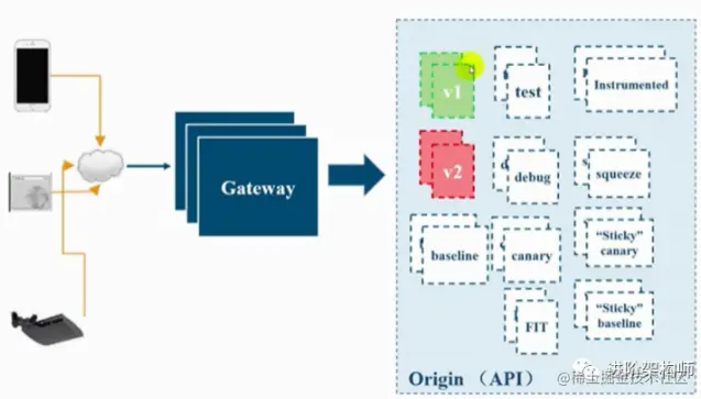 开发者对于生产,有些时候需要进行一定的测试。因此采用网关,可以实现,流量导向,路由转发到测试分支内,完成测试。
