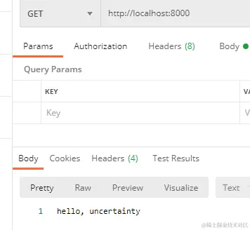 // ctx.body 相当于 http.createServer((req, res) => { res.end('你好,测不准') })