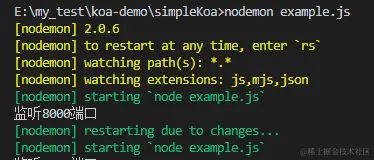但是这里每次改动代码都需要重新启动服务,不是很方便,这里我们安装 nodemon 辅助工具,更改之后会自动刷新,全局或者当前项目下安装都可以,我这里全局安装下 npm i nodemon -g。