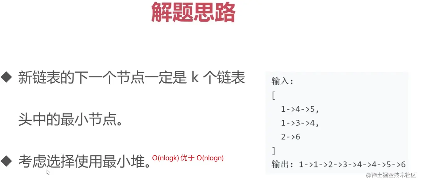 // 时间复杂度 O(nlogk) 空间复杂度主要是堆 O(k)