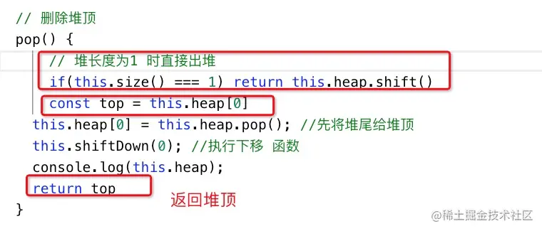 this.heap[0] = this.heap.pop(); //先将数组尾给堆顶